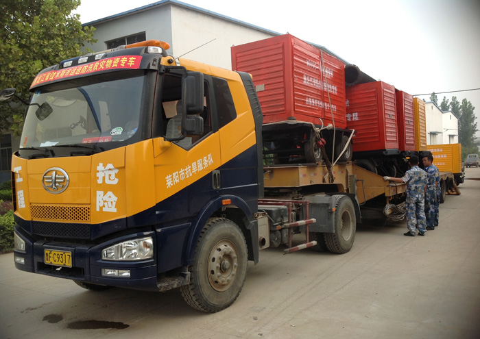 正在裝運發往黑龍江緊急救災的大流量移動泵站